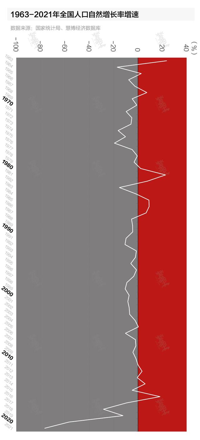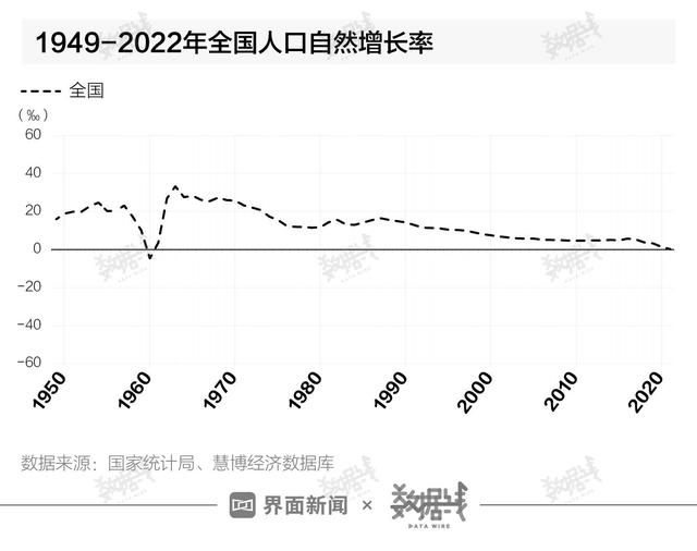 從整體趨勢而言,據(jù)國家統(tǒng)計(jì)局?jǐn)?shù)據(jù),1963年至今,全國人口自然增長率由最高33.33‰降至0.34‰,累計(jì)下降32.99個千分點(diǎn)。