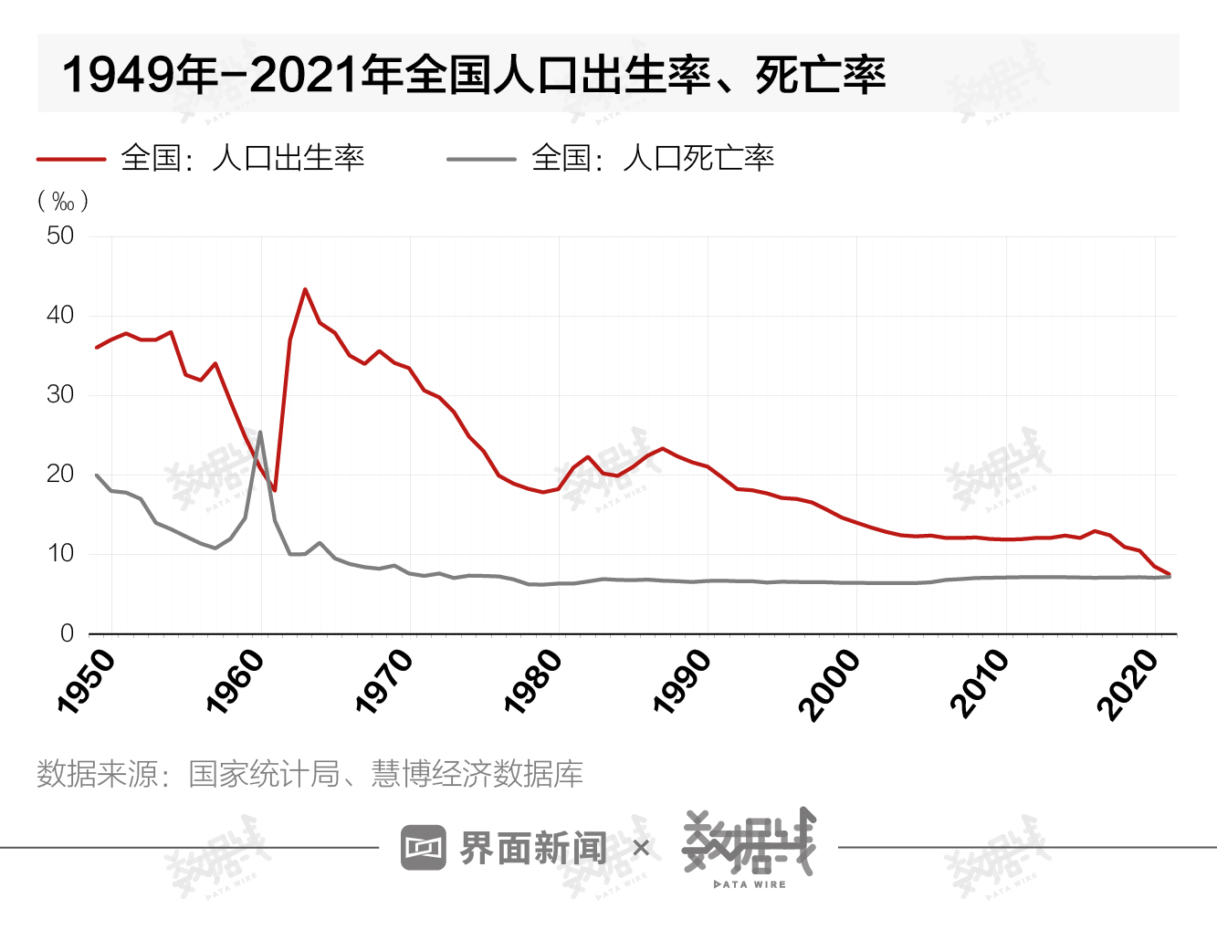 那么,到底問題出在哪?界面數(shù)據(jù)在統(tǒng)計(jì)了歷年人口出生率、死亡率數(shù)據(jù)后發(fā)現(xiàn),人口增長率大幅下跌,“主要問題”在出生人口上。