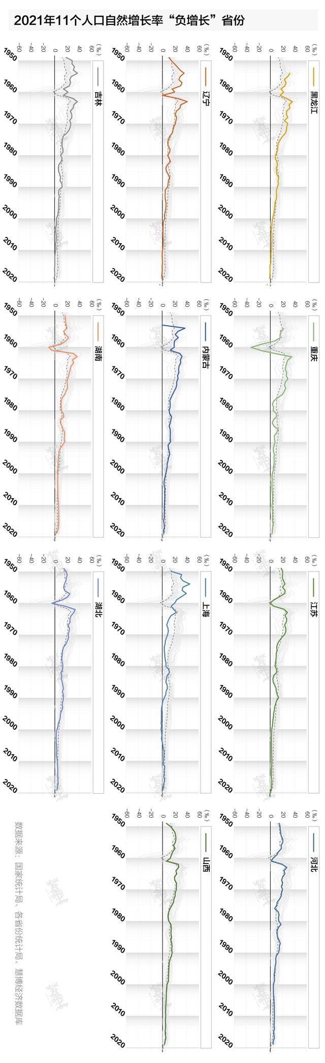 截至2021年,全國多省份已開啟人口“負(fù)增長”。據(jù)界面數(shù)據(jù)統(tǒng)計(jì),在有人口自然增長率數(shù)據(jù)公布的27個省份中,11省份人口自然增長率已為負(fù)值,占到近4成。其中,東北地區(qū)黑龍江、遼寧人口自然增長率“最嚴(yán)重”,分別為-5.11‰、-4.18‰。其次是重慶、內(nèi)蒙古,分別為-1.55‰和-1.28‰。