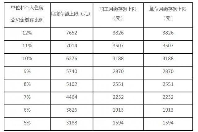 北京各住房公積金繳存比例對(duì)應(yīng)的月繳存額上限。