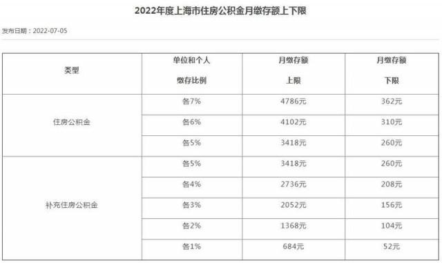 2022年度上海市住房公積金月繳存額上下限。