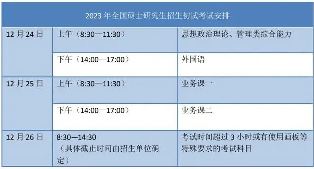 2023年全國(guó)碩士研究生招生初試考試安排。