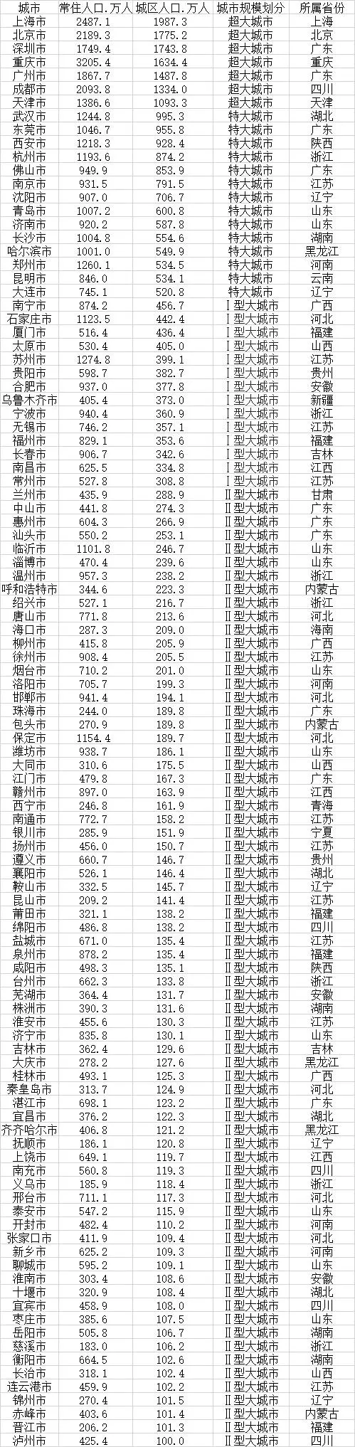 需要解釋的是,城區(qū)是指在市轄區(qū)和不設(shè)區(qū)的市,區(qū)、市政府駐地的實際建設(shè)連接到的居民委員會所轄區(qū)域和其他區(qū)域。也就是說,市轄區(qū)內(nèi)的農(nóng)村地帶,并不計入城區(qū)范疇??傮w看來,城區(qū)人口規(guī)模要小于市域常住人口規(guī)模,也小于市轄區(qū)人口規(guī)模。