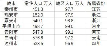 未來還有多個城市城區(qū)人口有望超過百萬大關(guān),進(jìn)入到大城市行列。第一財經(jīng)記者梳理發(fā)現(xiàn),包括泰州、瑞安、嘉興、平頂山、安陽、曲靖的城區(qū)人口均超過了97萬,其中安陽市更是達(dá)到了99.1萬人,平頂山市也達(dá)到了99萬人,嘉興市達(dá)到了98.8萬人。