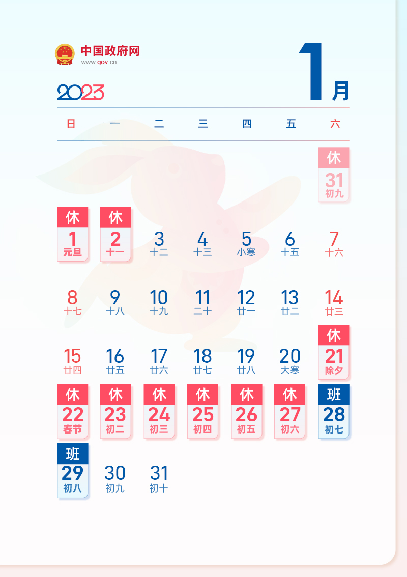 2022-12-09 08:39:32閱讀()中國政府網(wǎng)國務(wù)院辦公廳關(guān)于2023年部分節(jié)假日安排的通知