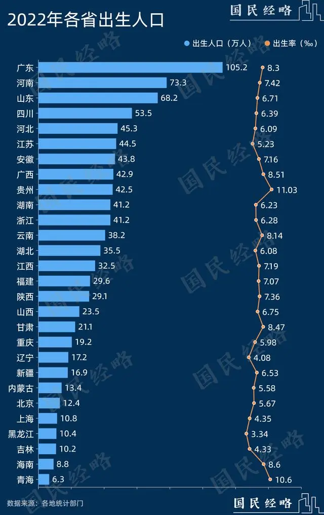 近日,各省份陸續(xù)發(fā)布2022年統(tǒng)計公報,對外披露最新常住人口及出生率數(shù)據(jù)。