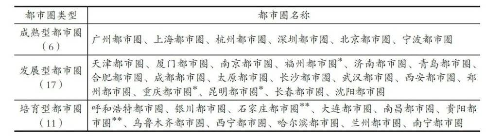 根據(jù)清華大學(xué)中國新型城鎮(zhèn)化研究院組編的《中國都市圈發(fā)展報告》,我國共有6個成熟型都市圈、17個發(fā)展型都市圈、11個培育型都市圈。
