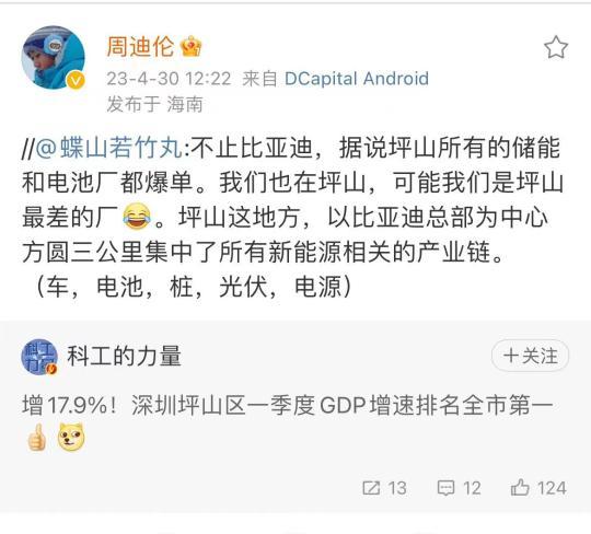 針對(duì)坪山區(qū)的一季度的經(jīng)濟(jì)數(shù)據(jù),有網(wǎng)友在社交媒體上稱,“不止比亞迪,據(jù)說(shuō)坪山所有的儲(chǔ)能和電池廠都爆單。”“以比亞迪總部為中心方圓三公里集中所有新能源相關(guān)產(chǎn)業(yè)鏈。”