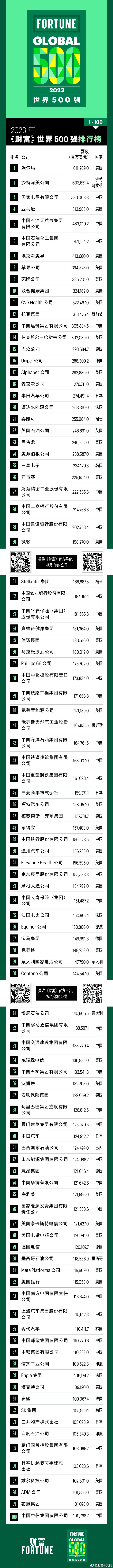 2023年財富世界500強排行榜揭曉:沃爾瑪蟬聯(lián)榜首,中國142家公司上榜