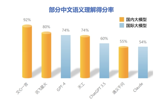 2023-08-10 23:52:13閱讀()IT之家近日,清華大學(xué)新聞與傳播學(xué)院教授、博士生導(dǎo)師沈陽所在團隊發(fā)布了《大語言模型綜合性能評估報告》(下文簡稱“報告”),報告顯示總得分率GPT-4第一,百度文心一言在三大維度20項指標(biāo)中綜合評分國內(nèi)第一,超越ChatGPT,其中中文語義理解排名第一,部分中文能力超越GPT-4。