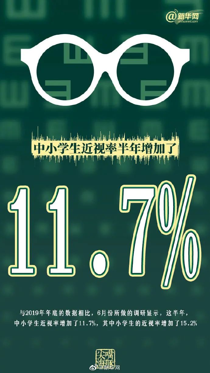 近期,教育部發(fā)布了中小學(xué)生視力情況抽樣調(diào)查,結(jié)果顯示,與2019年同期相比,9個(gè)省的中小學(xué)生近視率增加了11.7%,小學(xué)生的近視率增加最多,達(dá)到了15.2%。