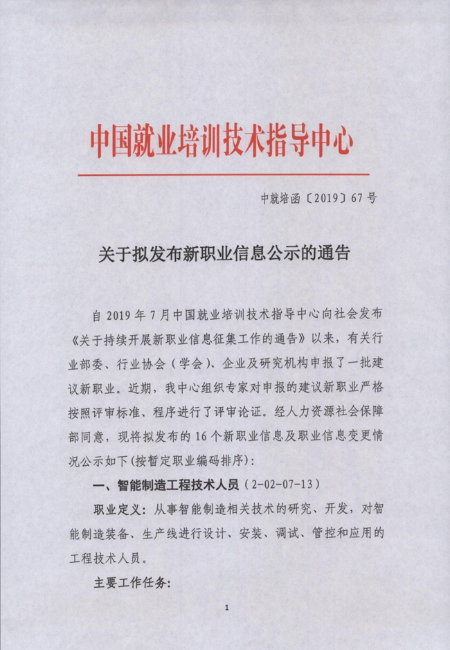 據(jù)中國(guó)就業(yè)培訓(xùn)技術(shù)指導(dǎo)中心官方網(wǎng)站了解到,自2019年7月中國(guó)就業(yè)培訓(xùn)技術(shù)指導(dǎo)中心向社會(huì)發(fā)布《關(guān)于持續(xù)開展新職業(yè)信息征集工作的通告》以來(lái),有關(guān)行業(yè)部委、行業(yè)協(xié)會(huì)(學(xué)會(huì))、企業(yè)及研究機(jī)構(gòu)申報(bào)了一批建議新職業(yè)。
