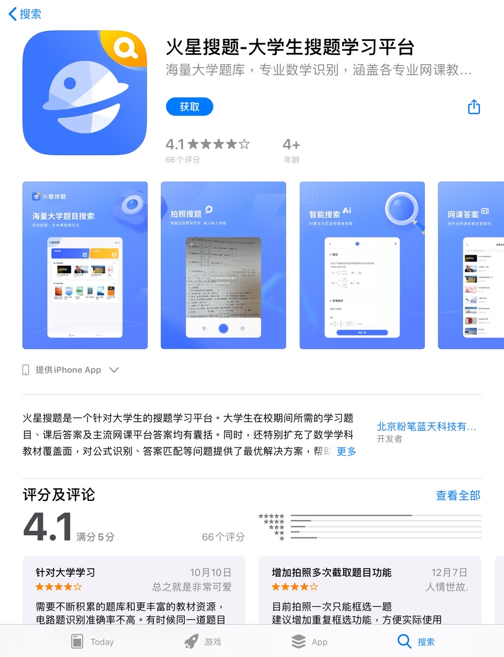 近日,粉筆職教旗下大學(xué)生搜題學(xué)習(xí)平臺火星搜題進行了版本更新,其題目涵蓋英語政治高數(shù)及各類公共課、專業(yè)課。據(jù)蘋果應(yīng)用商店開發(fā)者信息介 ...