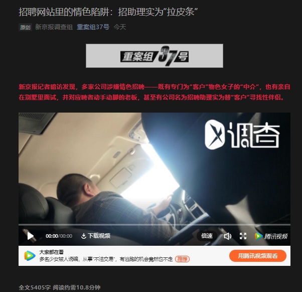 媒體調(diào)查BOSS直聘網(wǎng)站聘陷阱:招助理實(shí)為 “拉皮條”