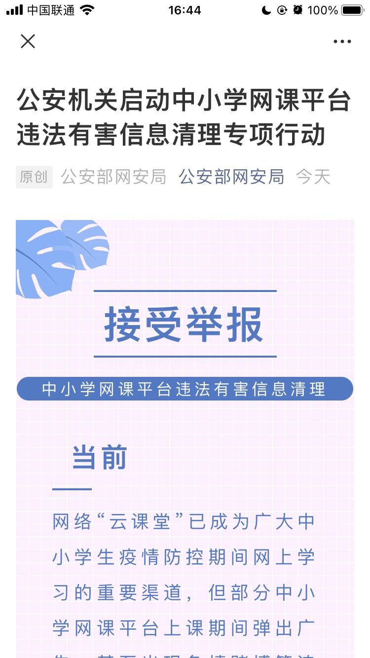 公安部網(wǎng)安局:網(wǎng)課平臺傳播含色情、賭博等信息可舉報(bào)
