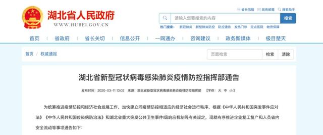湖北最新通告:繼續(xù)嚴(yán)格管控離漢離鄂通道,繼續(xù)延遲開學(xué)11日,湖北省新型冠狀病毒感染肺炎疫情防控指揮部發(fā)布通告,對有序推進企業(yè)復(fù)工復(fù)產(chǎn) ...