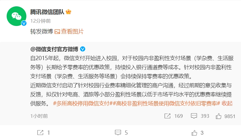 因收取0.6%手續(xù)費(fèi),多家高校宣布7月1日起停用微信支付
