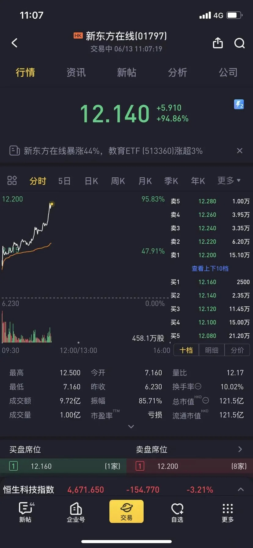 新東方直播帶貨周末成為市場最關(guān)注的話題,新東方主播突然成熱門搜索,新東方在線(01797 HK)6月13日開盤后出現(xiàn)暴漲,盤中漲幅逼近100%,截 ...
