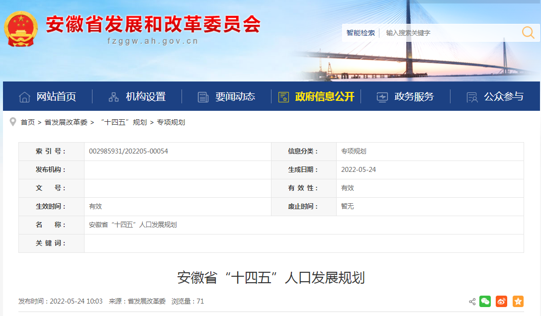 安徽出爐:安徽省“十四五”人口發(fā)展規(guī)劃