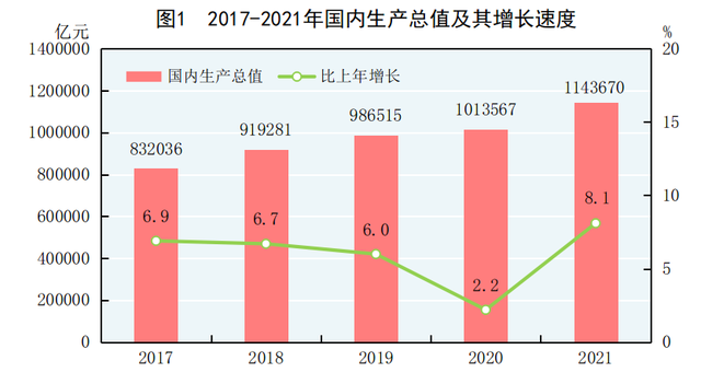國(guó)家統(tǒng)計(jì)局網(wǎng)站2月28日發(fā)布2021年國(guó)民經(jīng)濟(jì)和社會(huì)發(fā)展統(tǒng)計(jì)公報(bào)。初步核算,全年國(guó)內(nèi)生產(chǎn)總值1143670億元,比上年增長(zhǎng)8 1%,兩年平均增長(zhǎng)5 1% ...