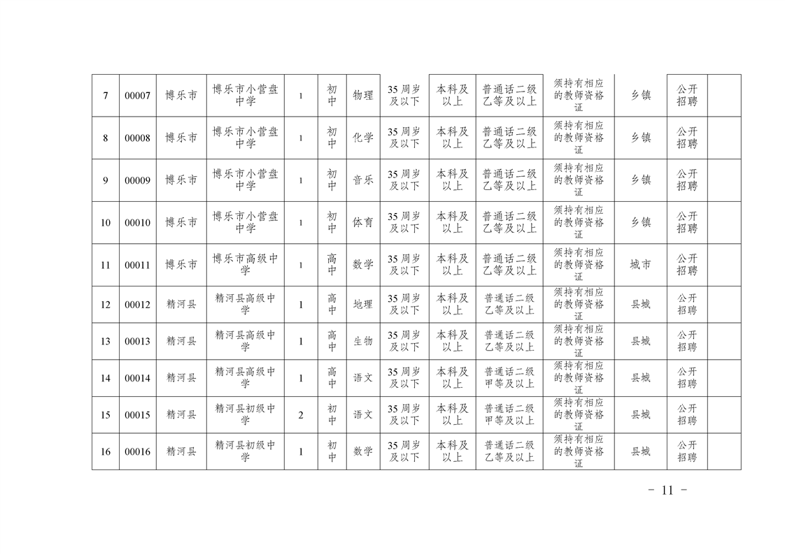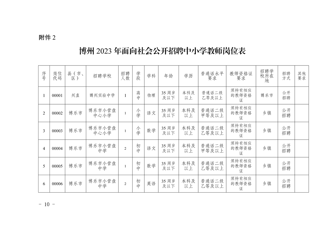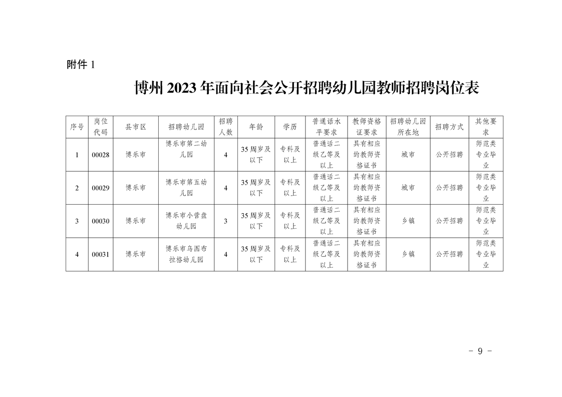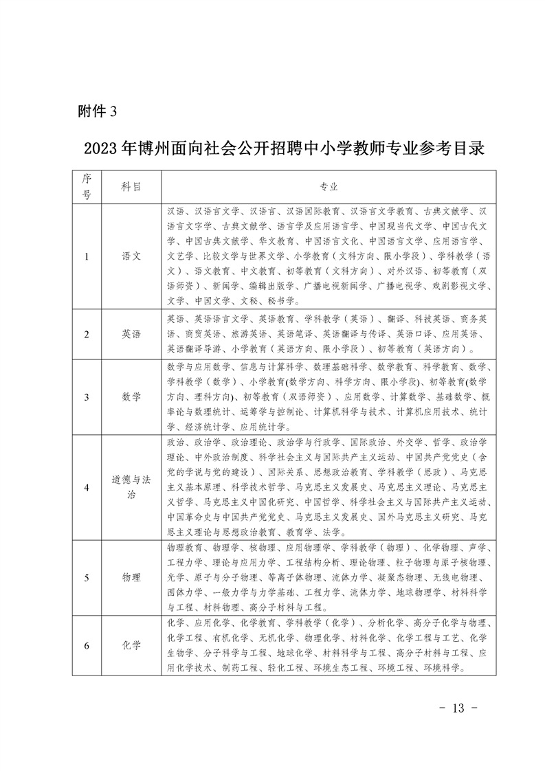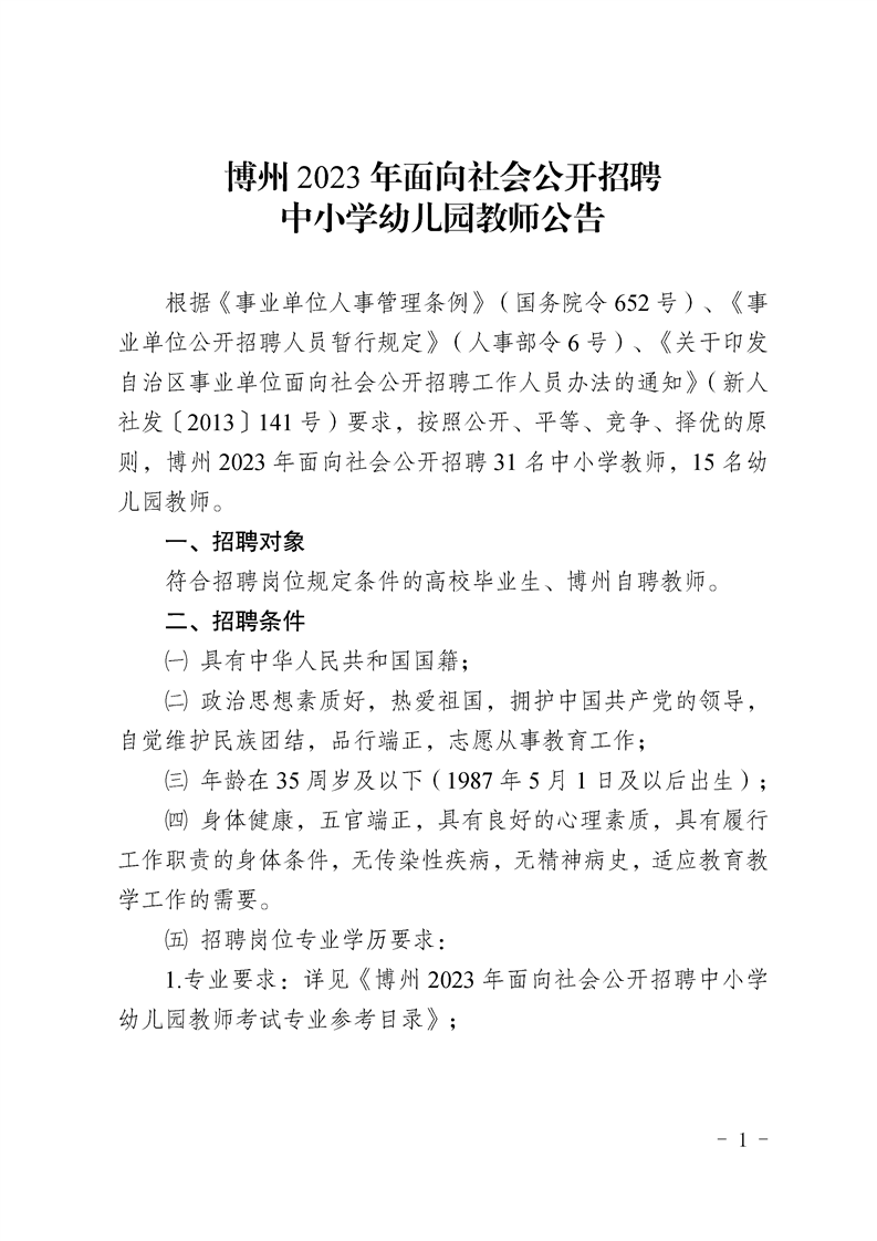 1.專業(yè)要求:詳見《博州2023年面向社會公開招聘中小學(xué)幼兒園教師考試專業(yè)參考目錄》;