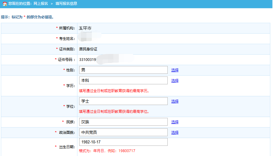 按照系統(tǒng)標(biāo)紅的提示信息如實(shí)、準(zhǔn)確、完整地填寫個(gè)人信息。