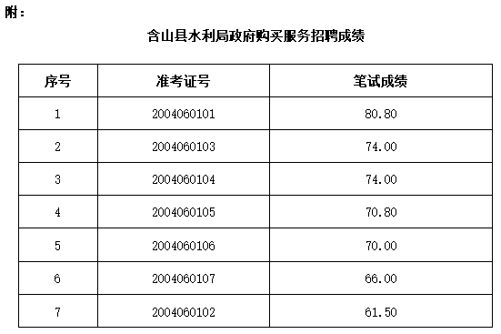 2020年馬鞍山含山縣水利局招聘政府購(gòu)買(mǎi)服務(wù)工作人員招聘成績(jī)公示