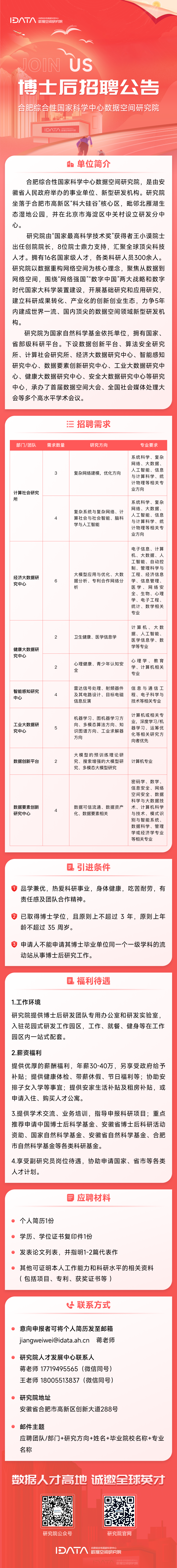 2024年合肥綜合性國家科學(xué)中心數(shù)據(jù)空間研究院博士后招聘公告