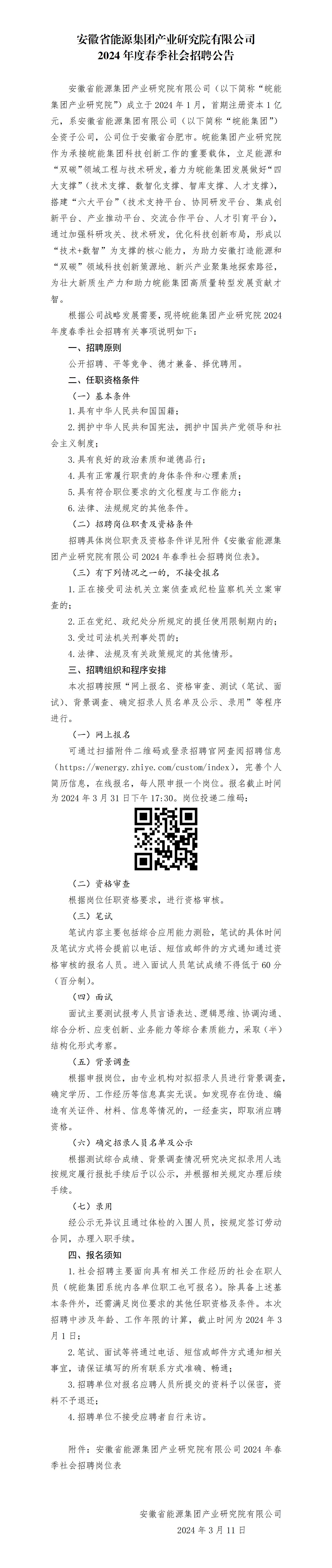 2024年安徽省能源集團產(chǎn)業(yè)研究院有限公司春季社會招聘公告