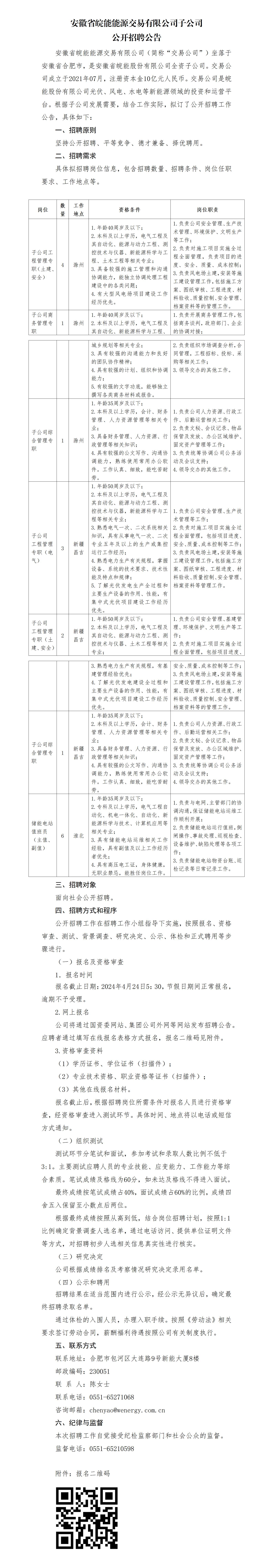2024年安徽省皖能能源交易有限公司子公司公開招聘公告