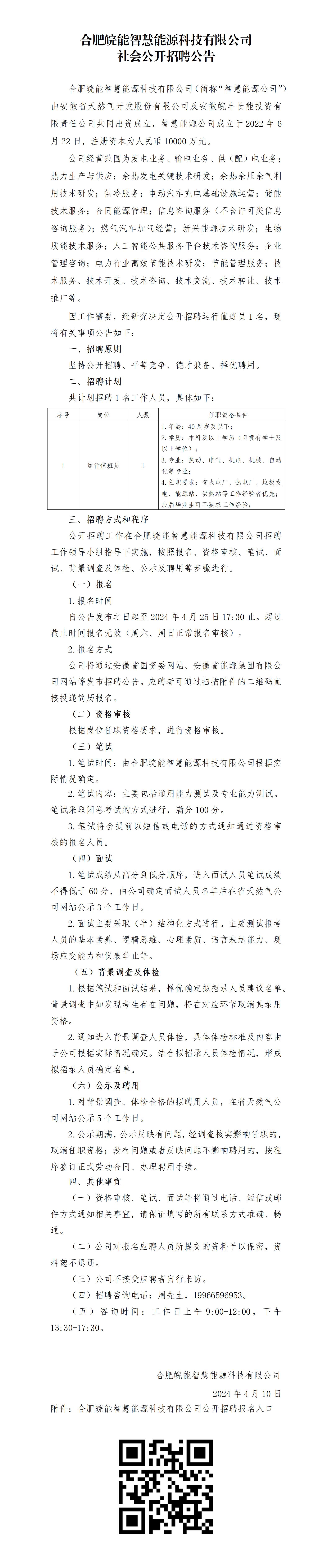 因工作需要,經(jīng)研究決定公開招聘運(yùn)行值班員1名,現(xiàn)將有關(guān)事項公告如下:
