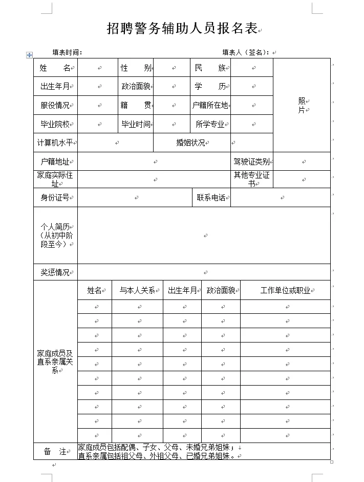 附件:招聘警務(wù)輔助人員報(bào)名表