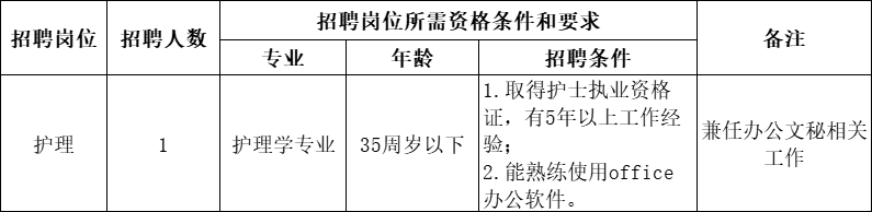 因工作需要,休寧縣萬安鎮(zhèn)衛(wèi)生院經(jīng)研究決定通過黃山市仁和人力資源服務(wù)有限公司面向社會公開招聘護(hù)理人員1名,現(xiàn)將有關(guān)事項公告如下: