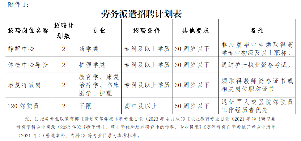 具體招聘崗位及人數詳見附件1:勞務派遣招聘計劃表