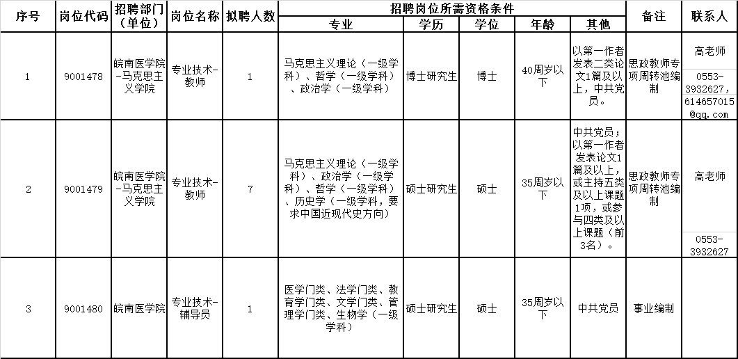 聯(lián)系部門:皖南醫(yī)學院人事處