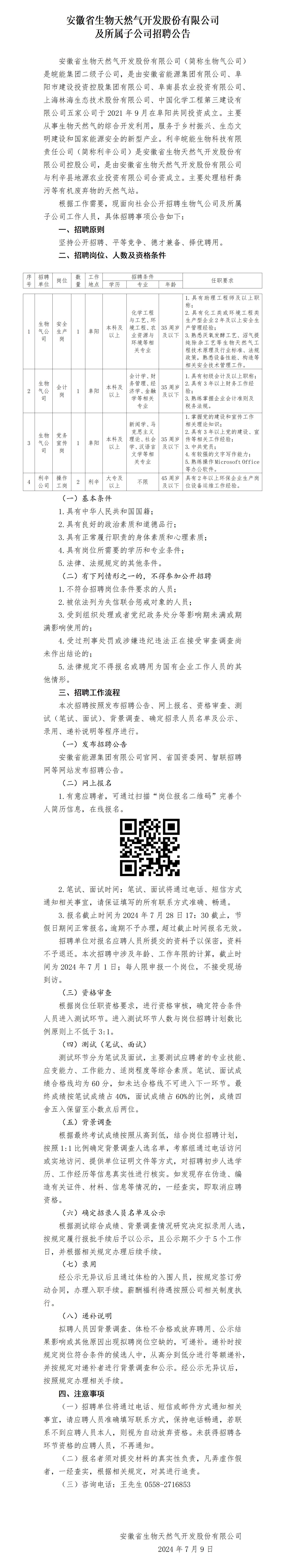 2204年安徽省生物天然氣開發(fā)股份有限公司及所屬子公司招聘公告