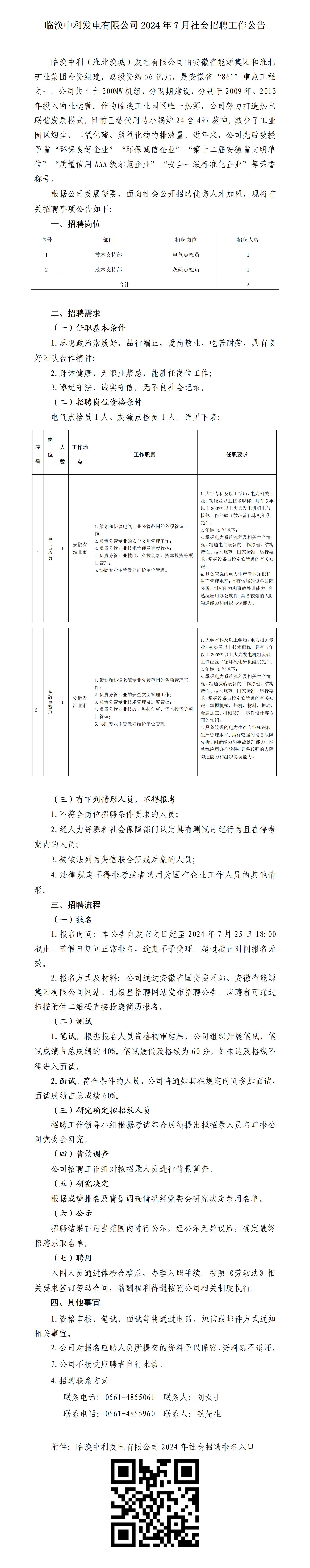 2024年淮北臨渙中利發(fā)電有限公司社會(huì)招聘工作公告