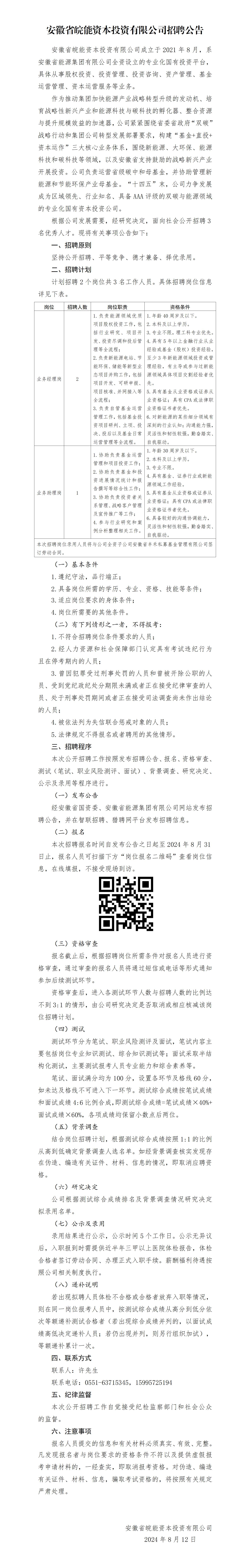 根據(jù)公司發(fā)展需要,經(jīng)研究決定,面向社會公開招聘3名優(yōu)秀人才?,F(xiàn)將有關事項公告如下:
