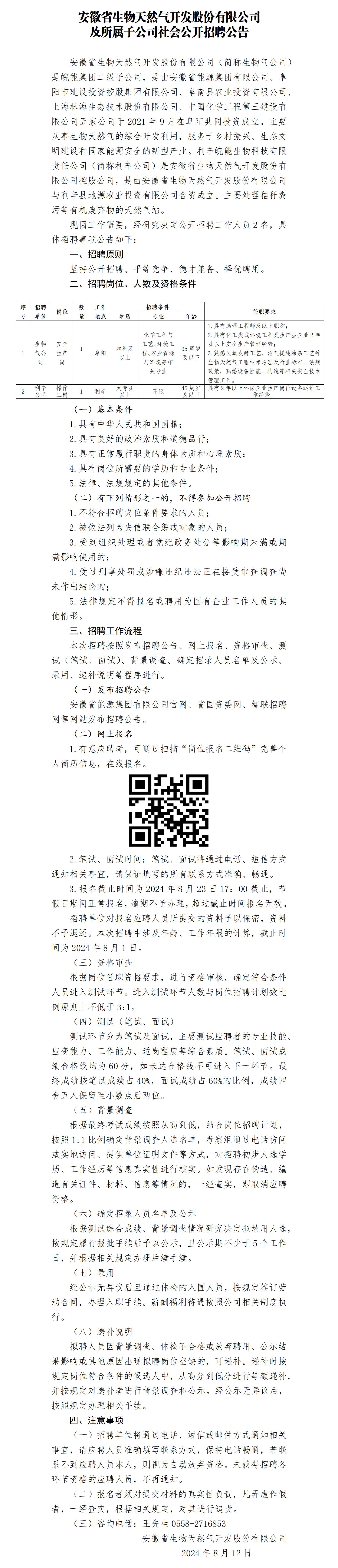 2024年阜陽安徽省生物天然氣開發(fā)股份有限公司及所屬子公司社會公開招聘公告