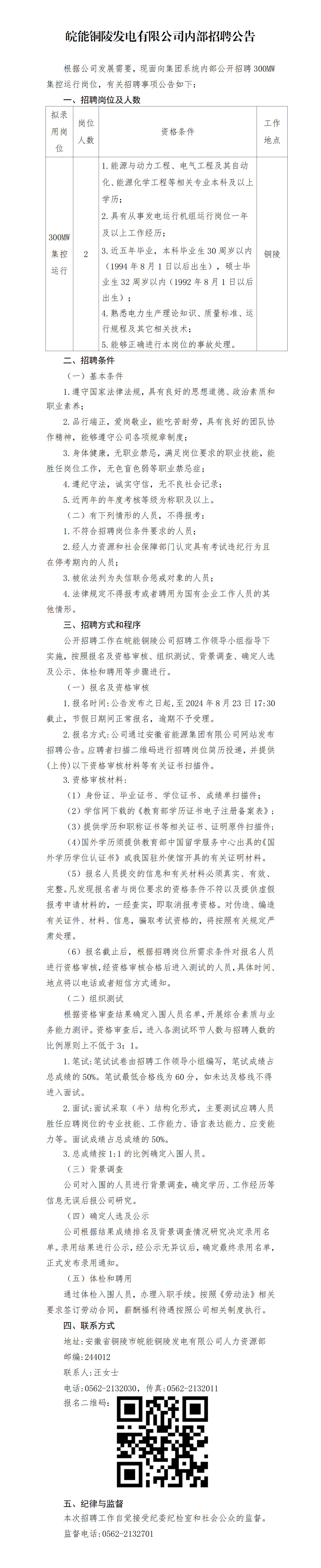 根據公司發(fā)展需要,現面向集團系統內部公開招聘30OMW集控運行崗位,有關招聘事項公告如下:
