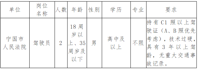4、寧國市戶籍或在招聘單位所在地有固定住所;
