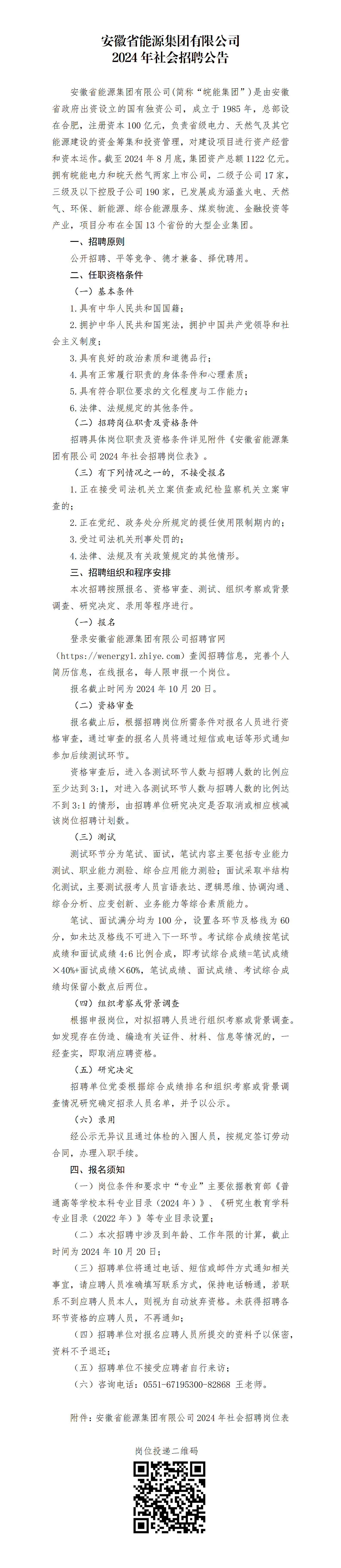 2024年安徽省能源集團(tuán)有限公司社會招聘公告