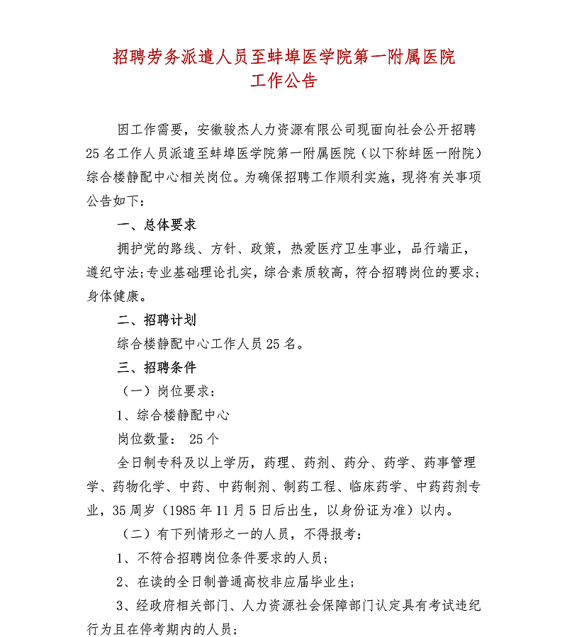 2020年蚌埠醫(yī)學(xué)院第一附屬醫(yī)院招聘工作公告