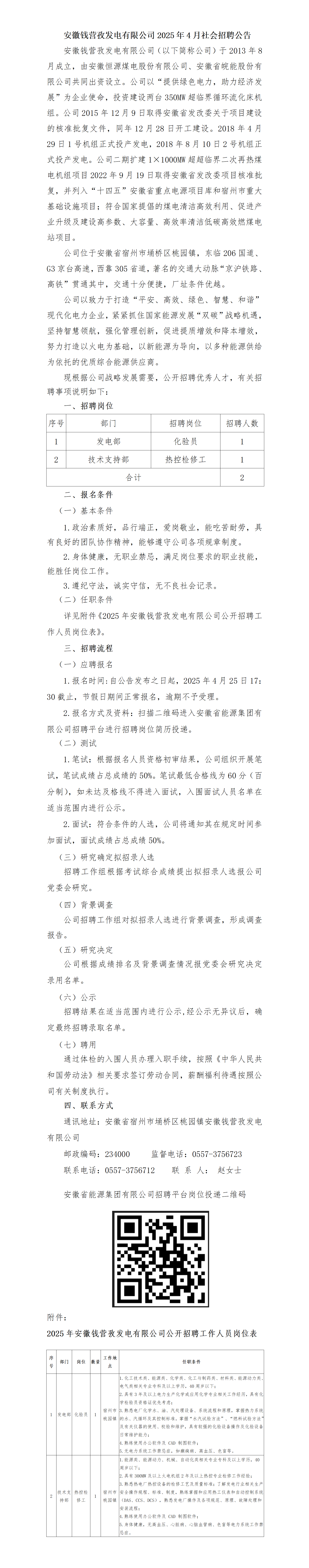 2025年安徽錢營(yíng)孜有限公司社會(huì)招聘公告