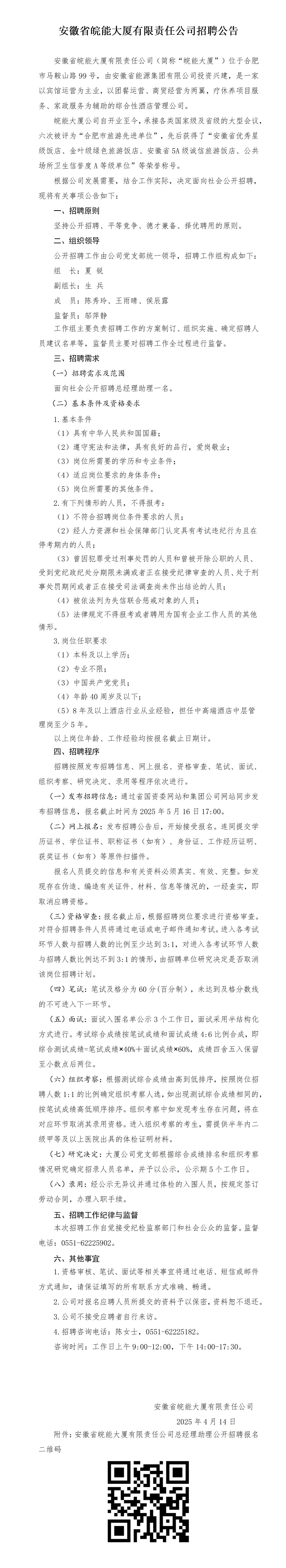 2025年安徽省皖能大廈有限責任公司招聘公告