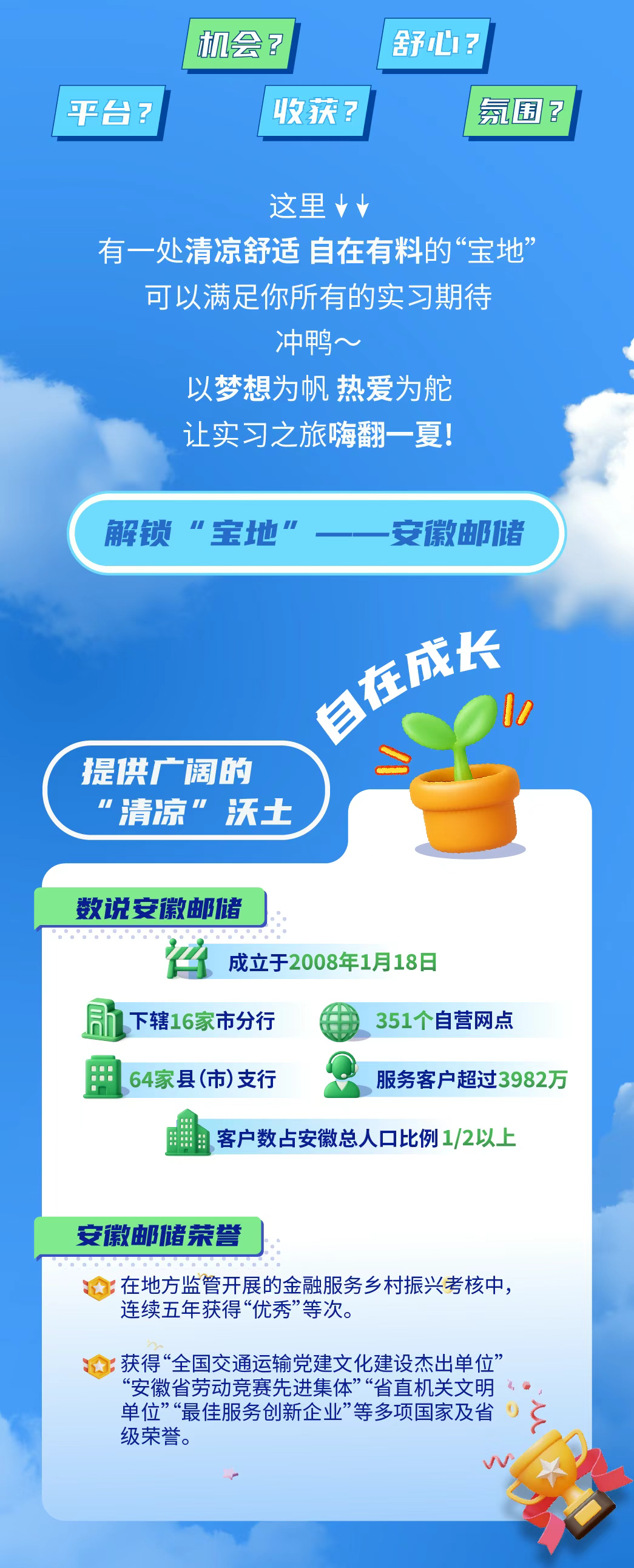 2025年中國郵政儲蓄銀行安徽省分行暑期實習生招募公告