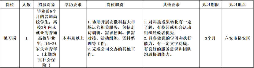 因工作需要,經(jīng)安徽科技大市場建設(shè)運(yùn)營有限責(zé)任公司研究決定,委托安徽皖信人力資源管理有限公司公開招募1名見習(xí)人員?,F(xiàn)就有關(guān)事項(xiàng)公告如下: