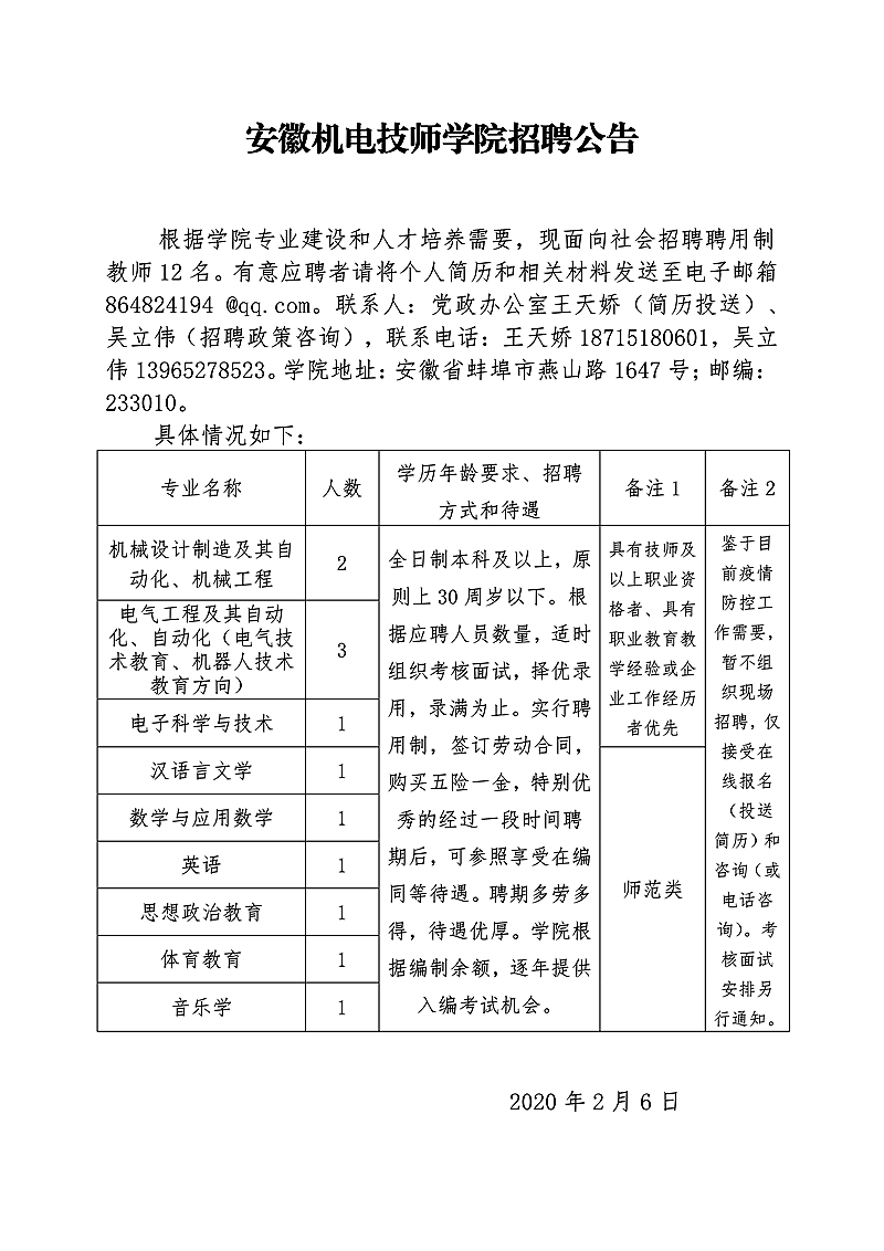 2020年安徽機(jī)電技師學(xué)院招聘公告