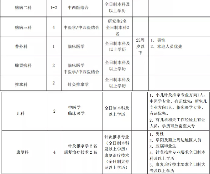 2021年潁上縣中醫(yī)院醫(yī)療衛(wèi)生專業(yè)技術人員招聘計劃表
