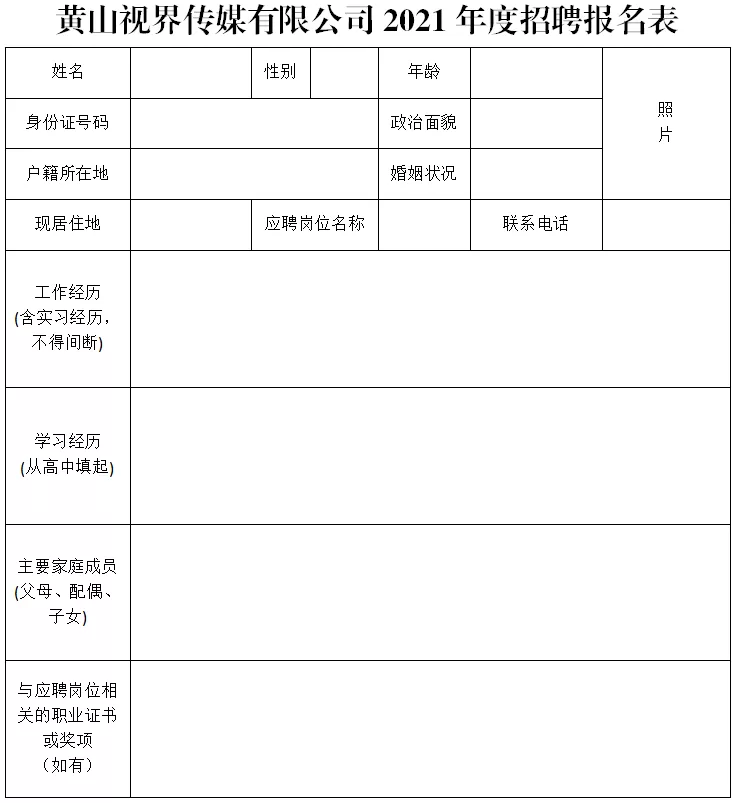 黃山視界傳媒有限公司是黃山日報社直屬國有文化企業(yè)?,F(xiàn)因業(yè)務(wù)發(fā)展需要,面向社會公開招聘6名工作人員。